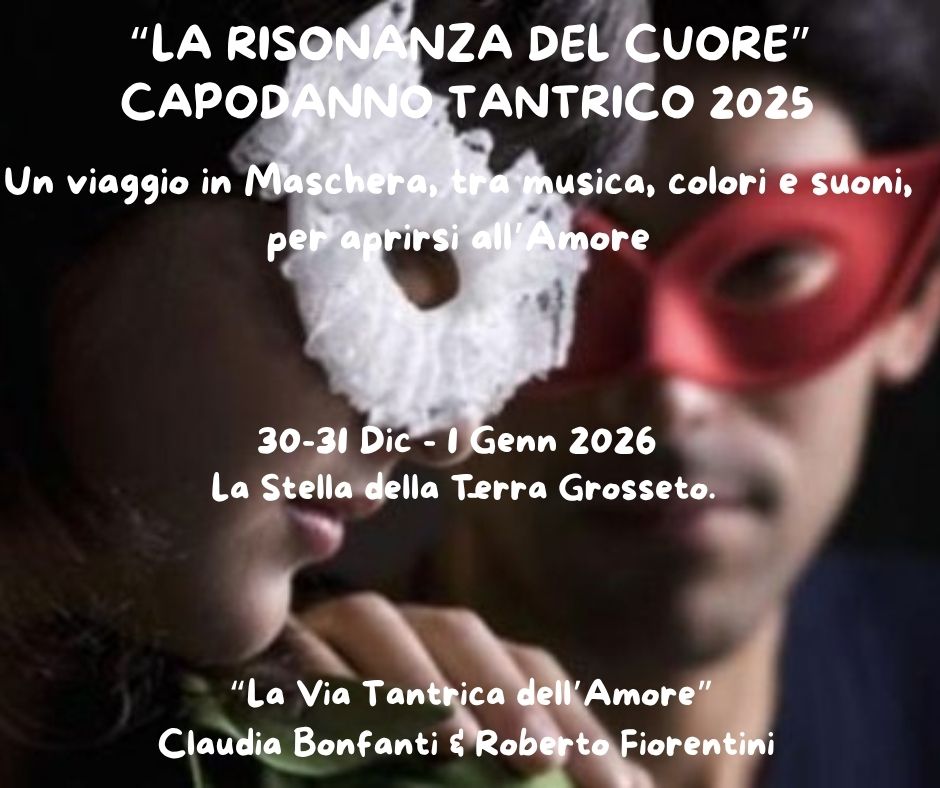 💖CAPODANNO TANTRICO 2025 – 2026, “LA RISONANZA DEL CUORE” UN VIAGGIO IN MASCHERA TRA MUSICA, COLORI E SUONI, PER APRIRSI ALL’AMORE.💖 📌check in ore 14.30 del 30 dicembre – check out ore 15.00 del 1 gennaio 👫INIZIO PRATICHE 30/12/2025 ORE 16.00 🏡Location: Agriturismo Olistico La Stella della Terra, Alberese – Grosseto – 💖IL PROGRAMMA tra […]